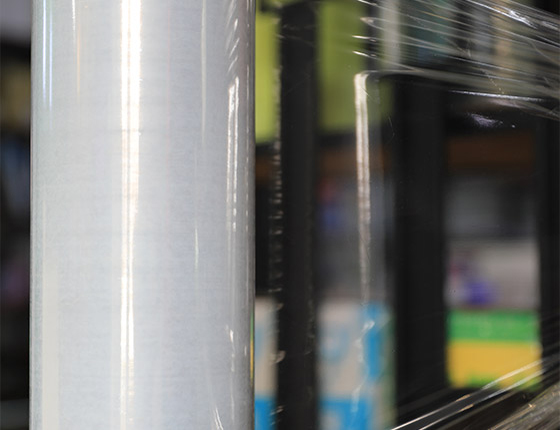 拉伸膜高速生产线3条,24小时全天运作,日产量25吨,